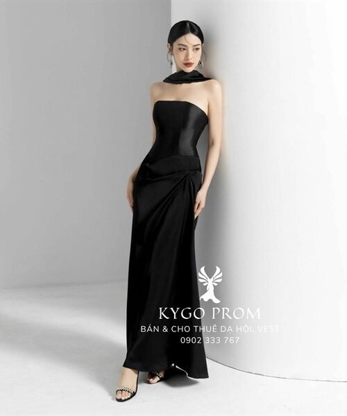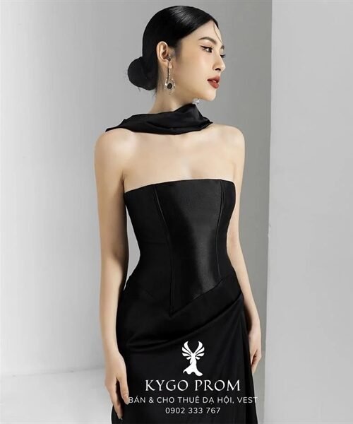 Đầm dạ hội thiết kế BYDI CHÍNH HÃNG – Đen – Cúp ngực kèm choàng cổ thanh lịch – Size M