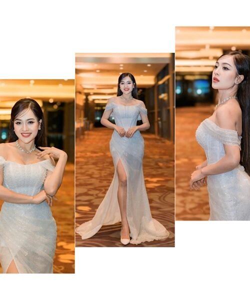 Đánh giá Đầm dạ hội thiết kế KYGO – Trắng – Xẻ Tà, Trễ Vai, Đính Ngọc , nổi bật – Size S M