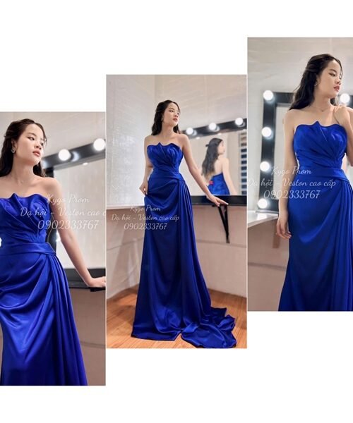 Đánh giá Đầm dạ hội thiết kế KYGO – Xanh dương – Cúp ngực xoè hoa, xẻ tà, cá tính và gợi cảm – Size S M