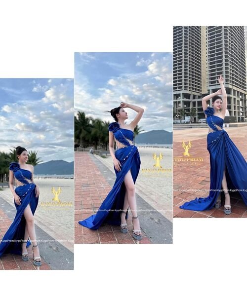 Đánh giá Đầm dạ hội thiết kế KYGO – Xanh dương – Lệch vai đính hoa, khoét eo, xẻ tà, thanh lịch và nổi bật – Size S M