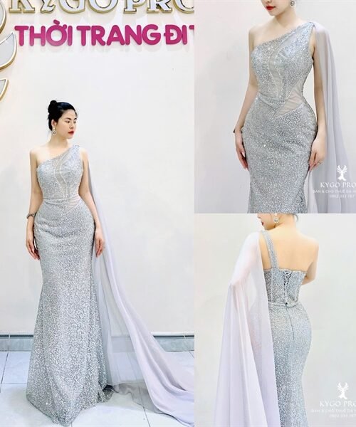 Đánh giá Đầm dạ hội thiết kế Luxury KYGO – Xám – Đính đá lấp lánh, có tà sang trọng – Size M L