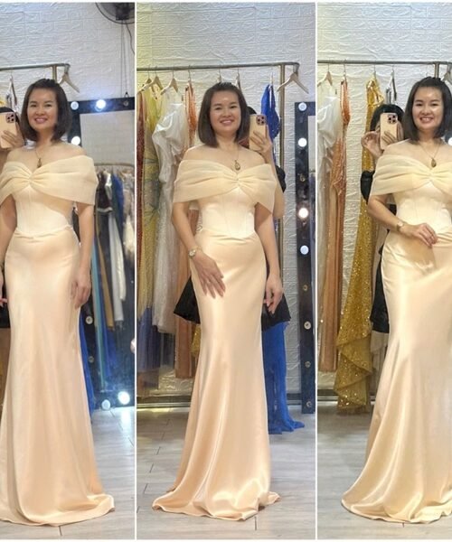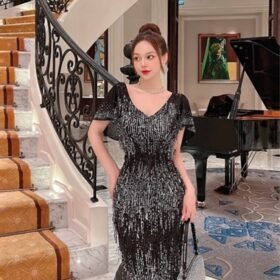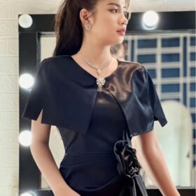 Đầm dạ hội thiết kế KYGO – Đen – Thiết kế trễ vai, đính hoa trước ngực, xẻ chân năng động – Size S M