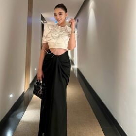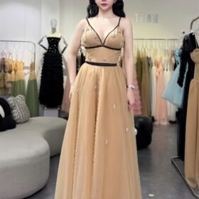Đầm dạ hội thiết kế CHOUCHOU CHÍNH HÃNG - Đen - 2 dây thanh lịch, nhẹ nhàng, nàng thơ - Size M