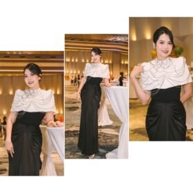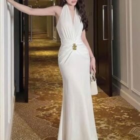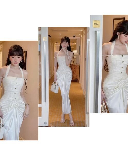 Đầm dạ hội thiết kế BYDI CHÍNH HÃNG - Đen - Cúp ngực kèm choàng cổ thanh lịch - Size M